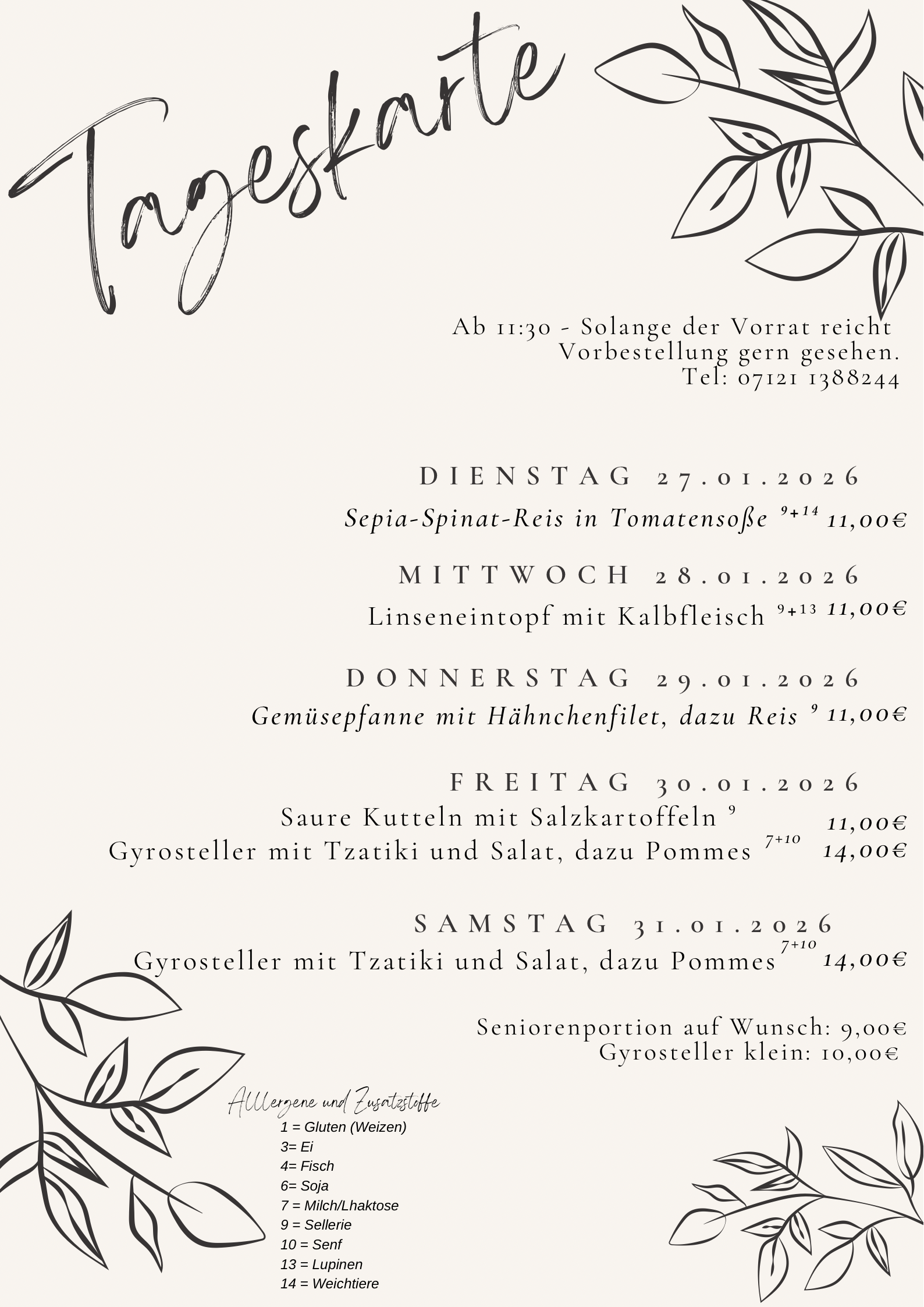 Deshalb bieten wir unsere Tagesgerichte preiswert an und servieren auf Wunsch auch Rentner- bzw. kleinere Portionen.